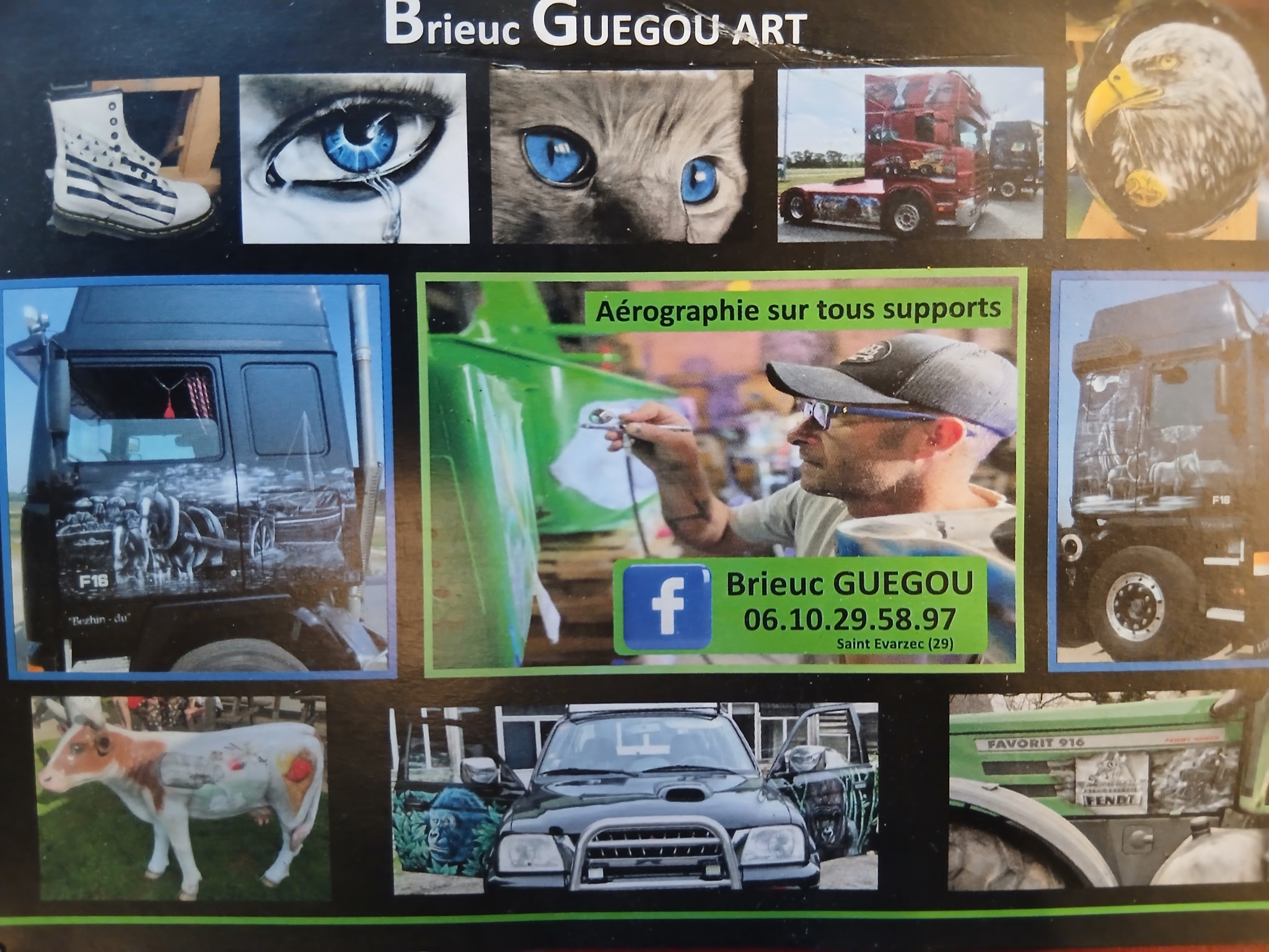 Véritable passionné, il transforme des carrosseries en immenses toiles roulantes. À l’aide de son aérographe, il donne vie à des œuvres spectaculaires, mêlant précision, créativité et effets visuels impressionnants. Des fresques détaillées aux univers fantastiques, chaque réalisation est unique et raconte une histoire.
