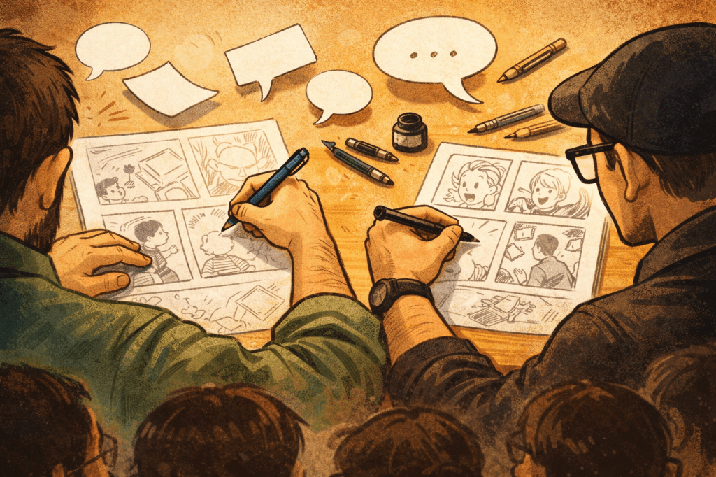 Ce moment privilégié vous permettra de poser vos questions, d’échanger avec eux et de découvrir les coulisses de la création BD. Que vous soyez lecteur assidu, amateur curieux ou futur auteur, laissez-vous guider à travers leurs histoires et leurs dessins et plongez dans un dialogue passionnant entre traits et paroles.